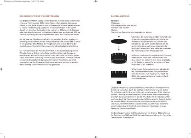Material: Bastelanleitung, Bastelbogen Trommel, sechs historische Bildstreifen, ein leerer Bildstreifen